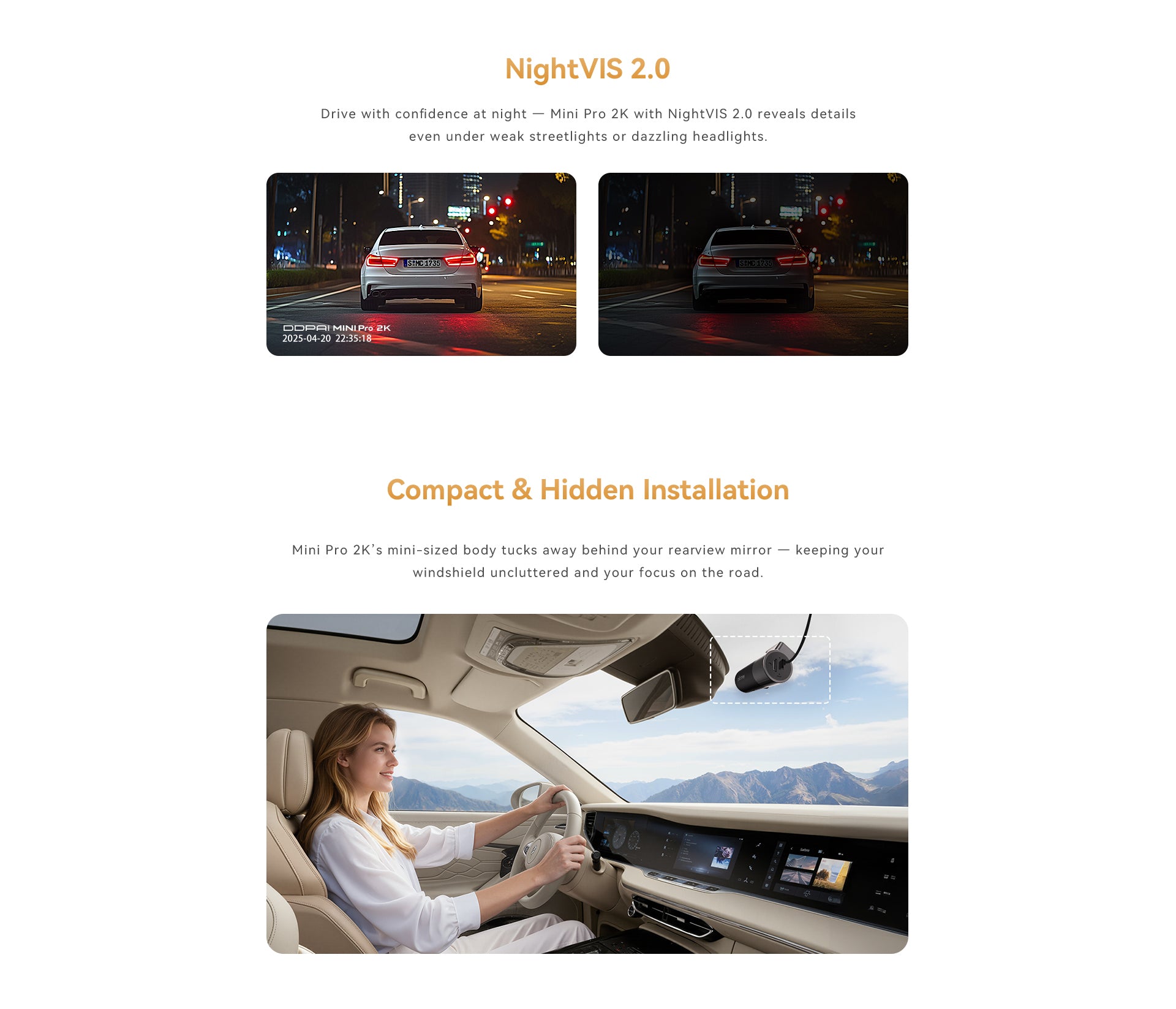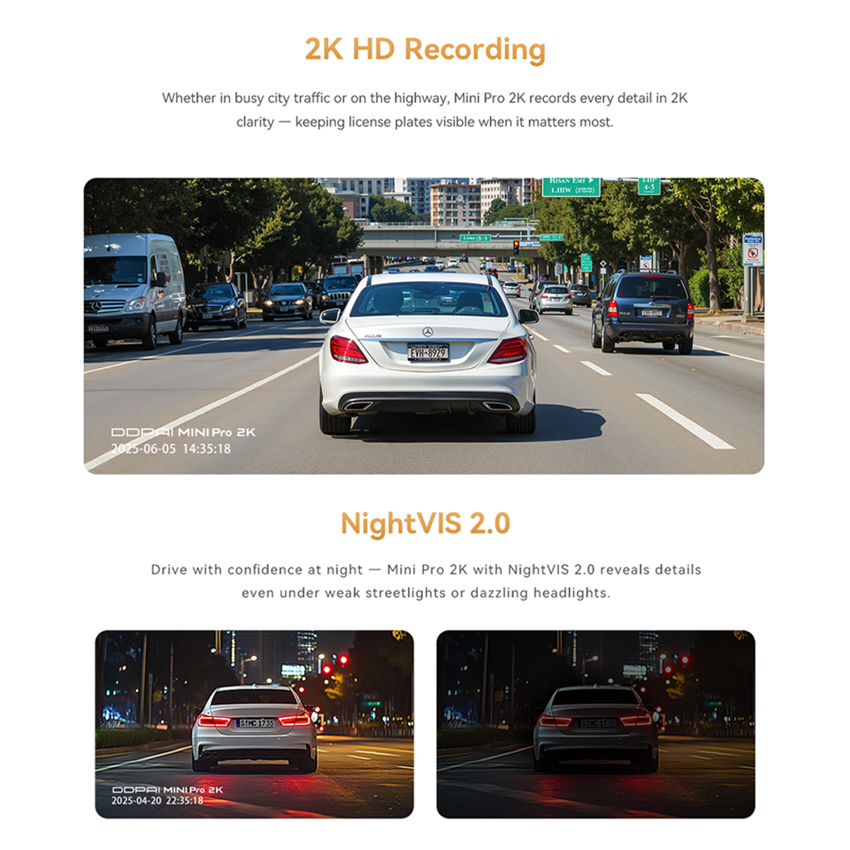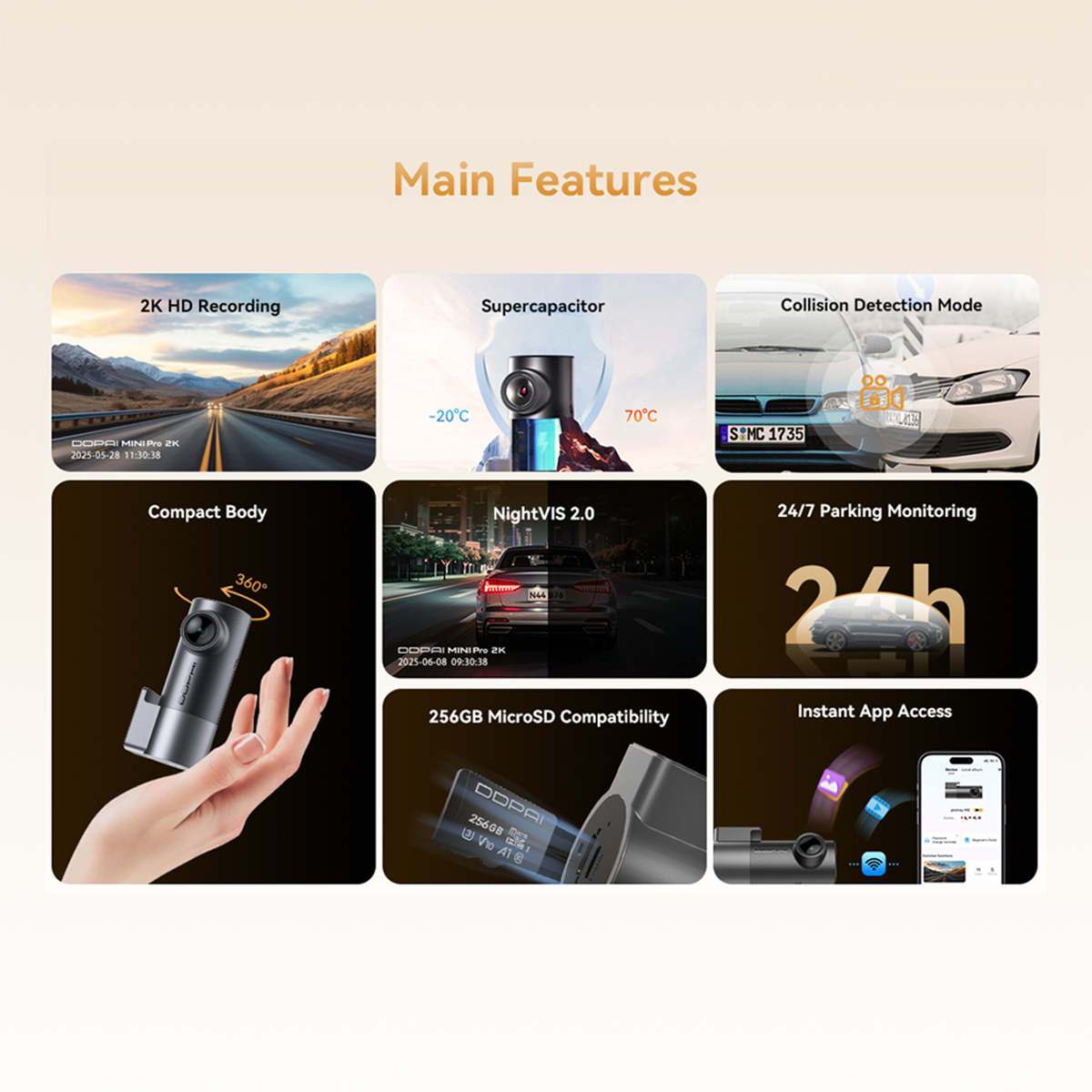 DDPAI MINI Pro 2K has a high-performance 1/2.9" CMOS image sensor that empowers 2560×1440 high resolution and a 140° wide-angle lens that provides a broader vision.