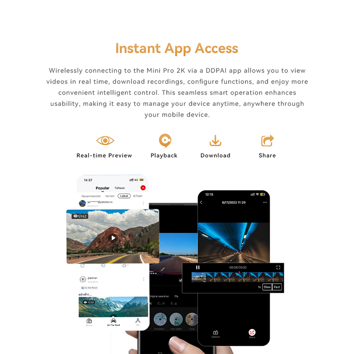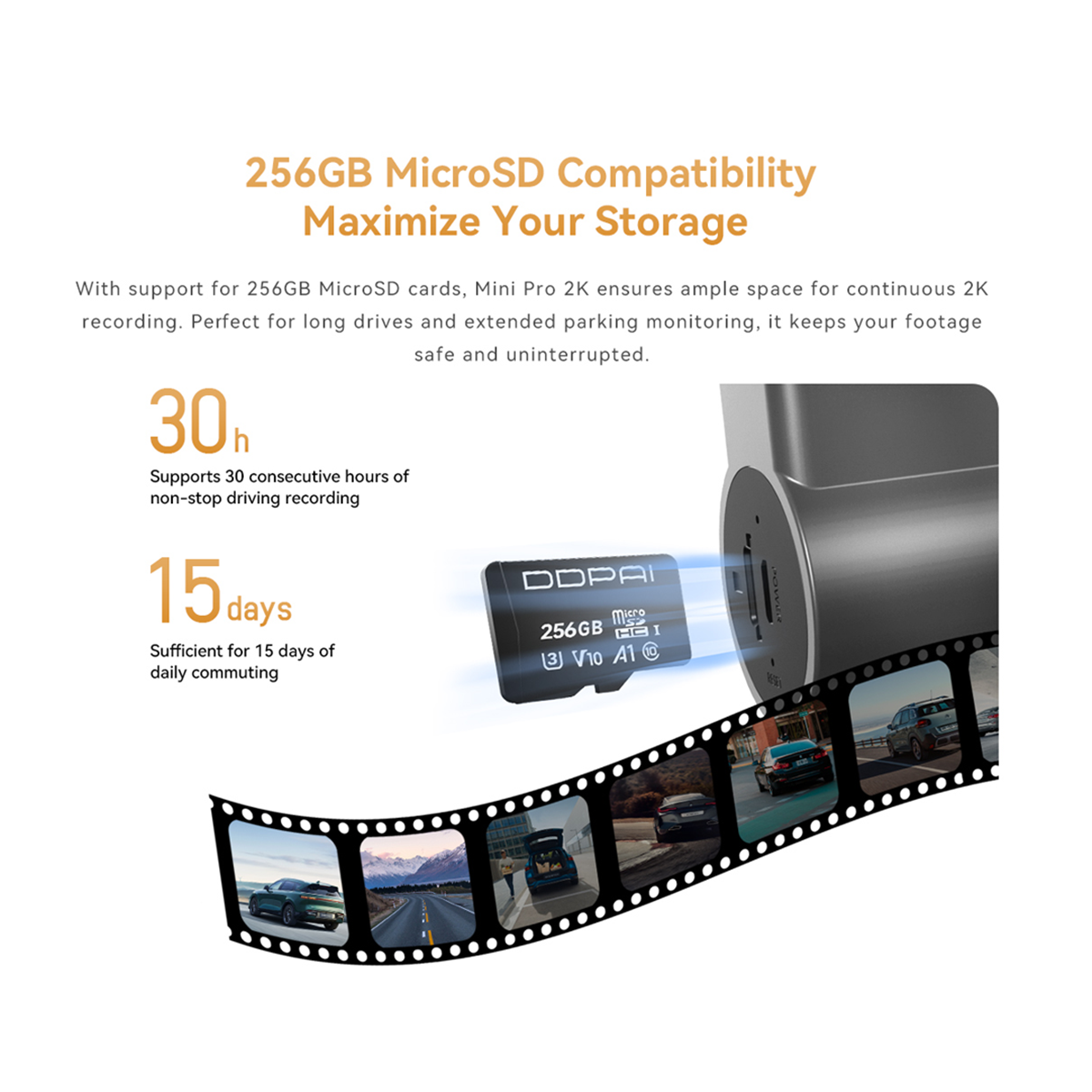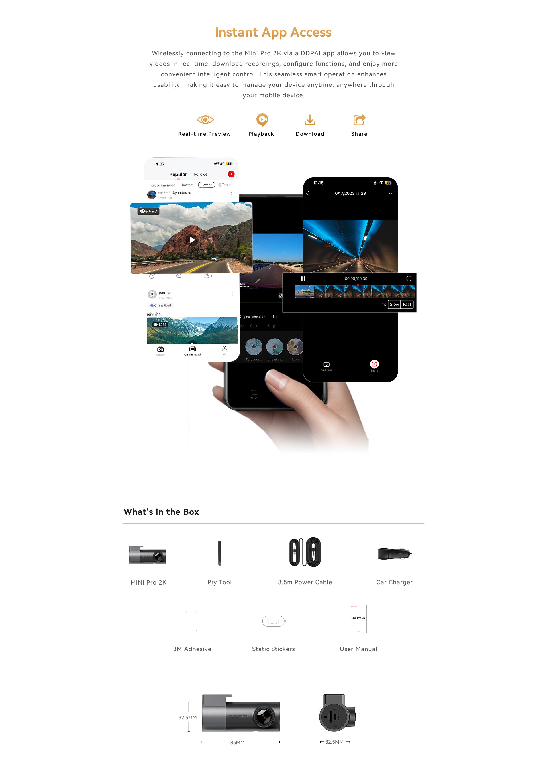 DDPAI MINI Pro 2K has a high-performance 1/2.9" CMOS image sensor that empowers 2560×1440 high resolution and a 140° wide-angle lens that provides a broader vision.